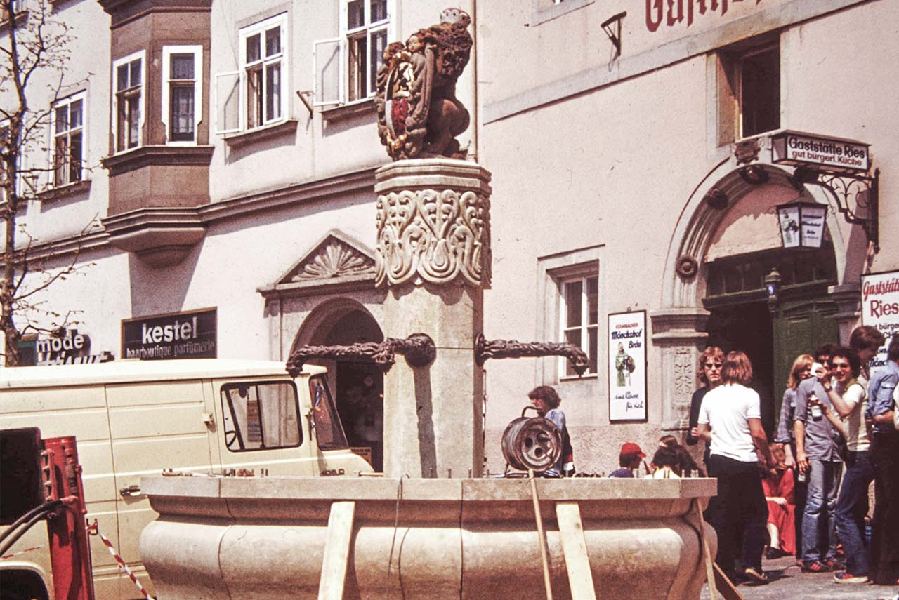 Mitte der 1970er Jahre wurde der Obere Marktbrunnen vor der ehemaligen Gastwirtschaft Ries, in der sich heute ein griechisches Restaurant befindet, wieder aufgestellt.