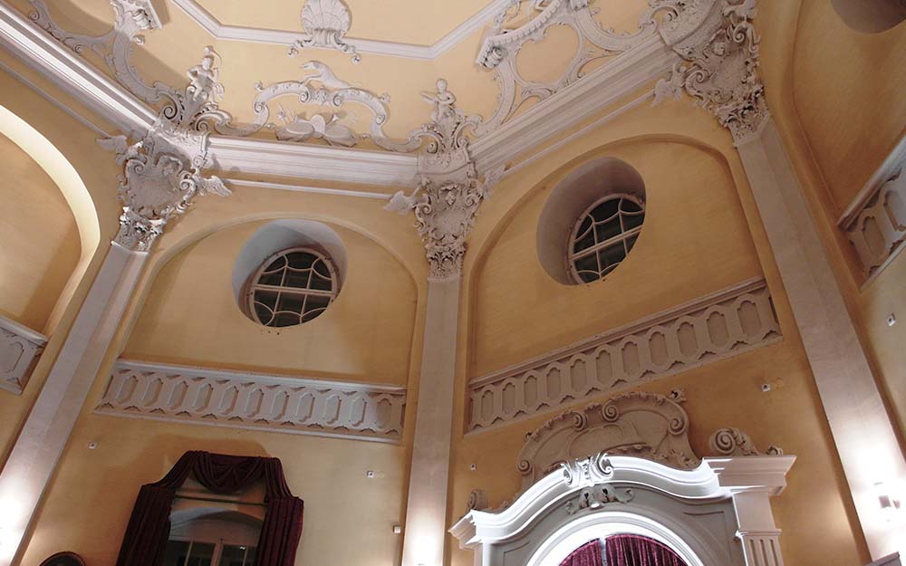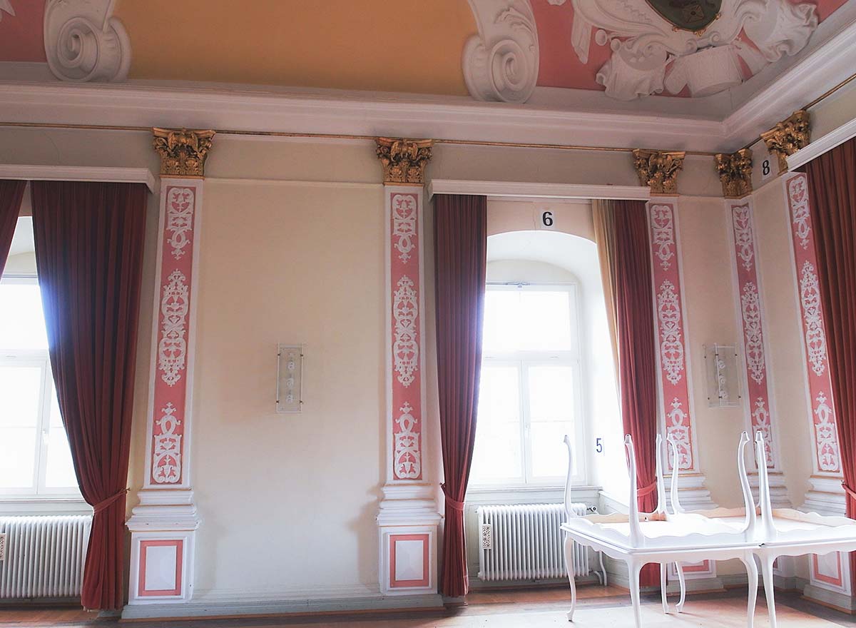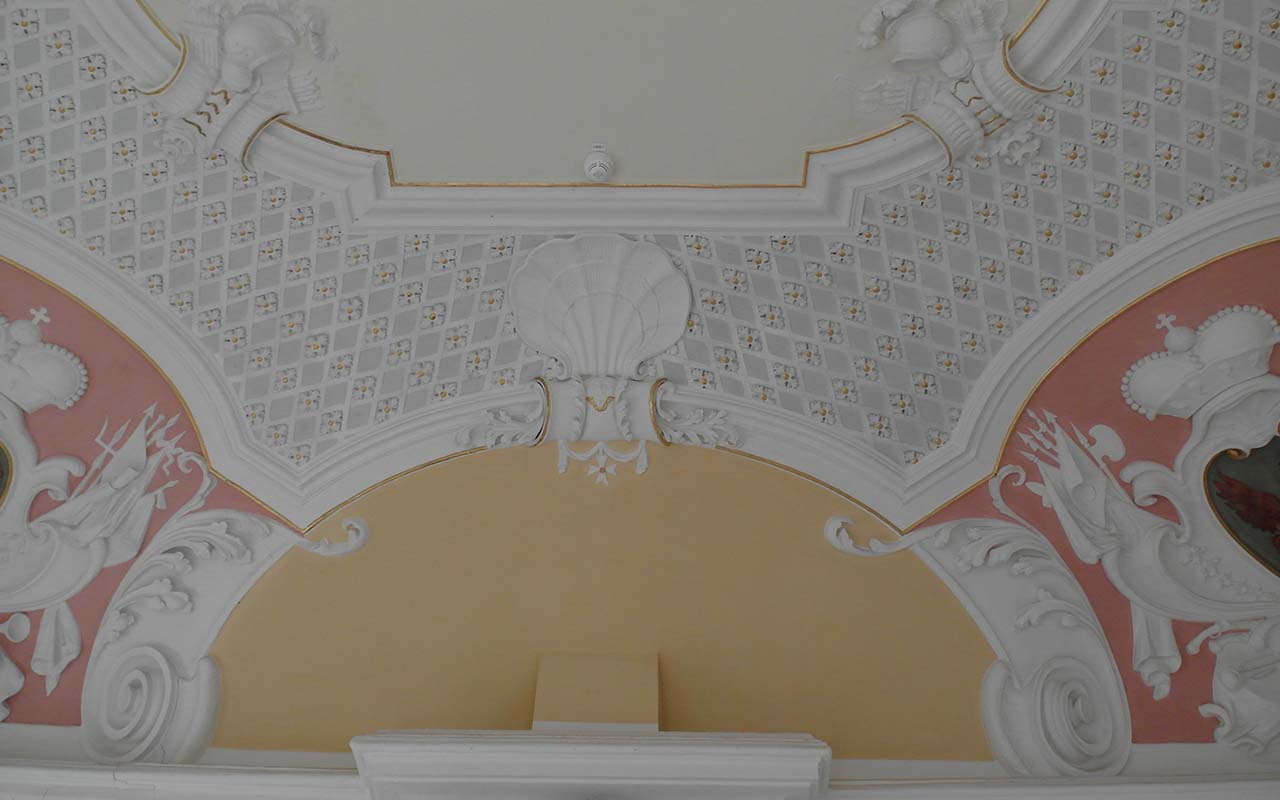 Dort begegnen wir überall dem Künstler-Duo Cadenazzi (Stuck) & Schreyer (Deckenmalerei) wieder.