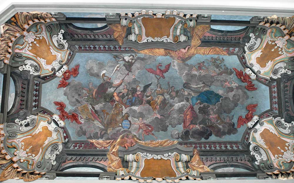 1725-1726/7 wurde im mittleren Neubau-Trakt des Ordensschlosses St. Georgen auch der dortige Kapitel- oder Roter Adler-Saal erneuert.