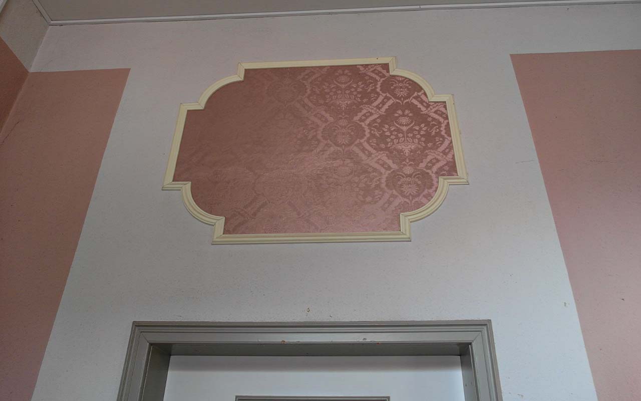 Die sw-Fotos aus der Machbarkeitsstudie der kulturplan-Autorinnen Susanne Götz & Bettina Keß von 2010 zeigen erste Vorab-Renovierungsversuche. Erst 2015 konnte der Saal mit Unterstützung der Landesstelle für Nichtstaatliche Museen für etwa 500 Tsd Euro professionell restauriert werden.