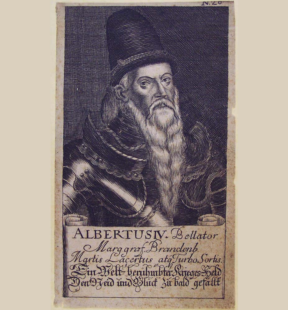 Der Markgraf ließ sich dadurch nicht entmutigen, er war mächtig und galt als einer der wichtigsten Fürsten seiner Zeit. Bis zu seinem Tod 1486 vereinigte er als Kurfürst in Brandenburg und Fürst in Franken alle Herrschaftsgebiete der Hohenzollern in seiner Hand: Franken „unter dem Gebirg”, „ob dem Gebirg” und die Mark Brandenburg. Bis ins hohe Alter setzt er sich für Kaiser und Reich ein. Er liebte Jagdvergnügen und große adlige Turniere. Und auf dem Kupferstich-Repro (Stadtarchiv Kulmbach) erstaunt selbst Kriegsgott Mars vor seinem Waffenglanz.
