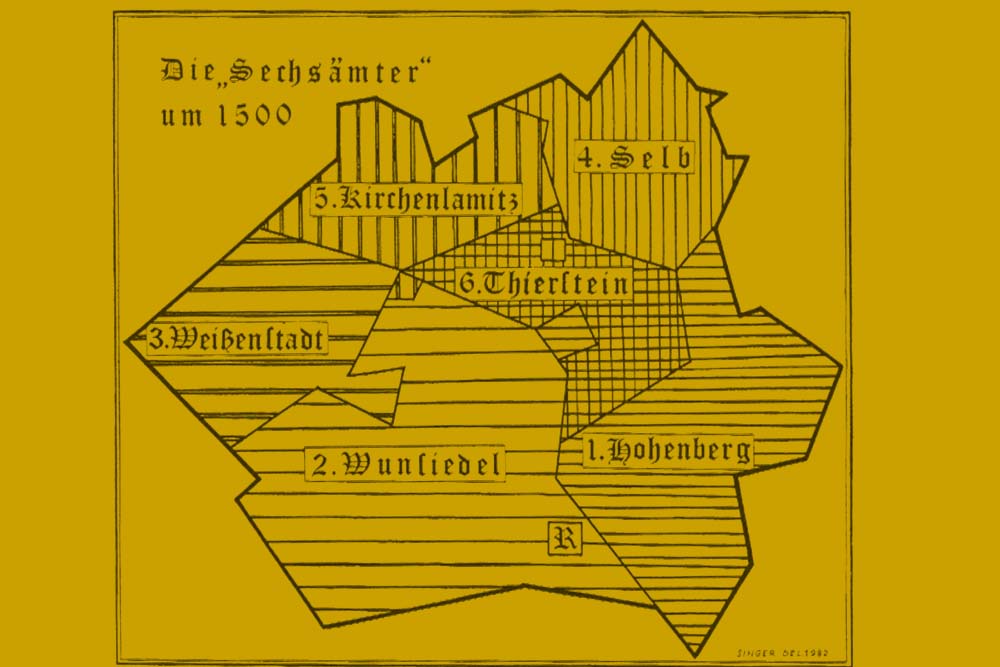 Die Burgen Wunsiedel und Hohenberg waren 1285 ihre ersten Erwerbungen. 1341 wird Rüdiger von Sparneck erster burggräflicher Amtmann auf Hohenberg. Die expandierenden Burggrafen, die sich ab Mitte des 14. Jh. Hohenzollern nannten, eigneten sich durch gezielte Erwerbspolitik nach und nach auch Kirchenlamitz, Selb, Thierstein und Weißenstadt an und stellten sie ebenfalls unter die Obhut eigener Amtmänner. So entstand bis ins 15. Jahrhundert hinein das Sechsämterland als politische Gliederung des Markgraftums Brandenburg-Bayreuth, das ab 1500 zum Fränkischen Reichskreis gehörte. Heute ist dieses Gebiet nahezu identisch mit dem Landkreis Wunsiedel und die „Marke Sechsämterland“ ist eher touristisch und als Likör bekannt.